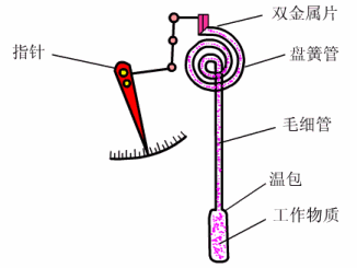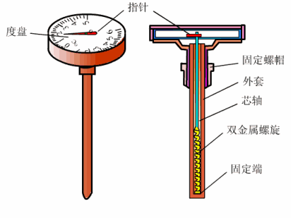 1、膨胀式温度计 膨胀式温度计的测温是基于物体受热时产生膨胀的原理,可分为液体膨胀式和固体膨胀式两种。 这里主要介绍固体膨胀式温度计中的双金属温度计。