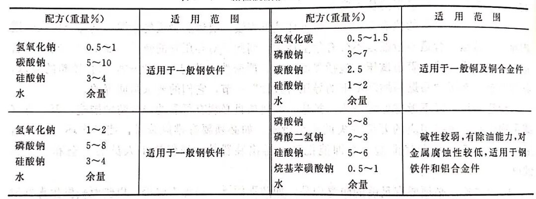 表 碱性脱脂液配方及使用条件